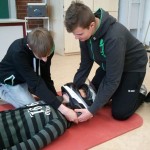 Einen ganzen Samstag trafen sich die Schulsanitäter mit ihrem Betreuungslehrer Herrn Thurn in der Schule zur Ausbildung für ihren Dienst.